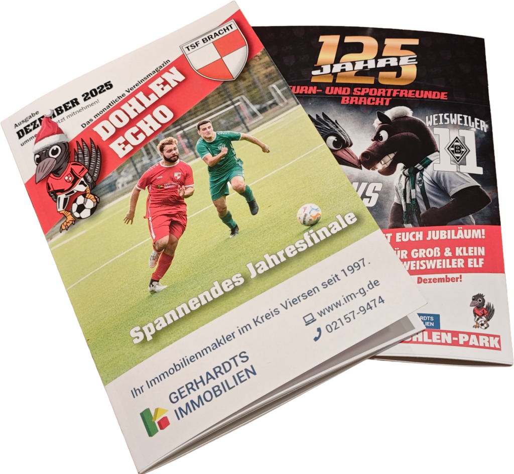 Im Oktober 2024 wurde das monatliche Vereinsmagazin vom TSF-Bracht – das DOHLENECHO – wieder belebt: Alle Ausgaben findet ihr hier: